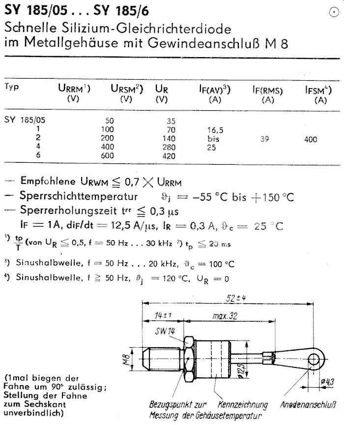 SY 185/6 K ( Silizium Avalanche Hochspannungs-Diode 20 A , 600 V