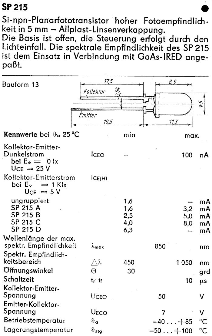 SP 215C ( Fototransistor , 25 V , 4,0...8,0 mA )