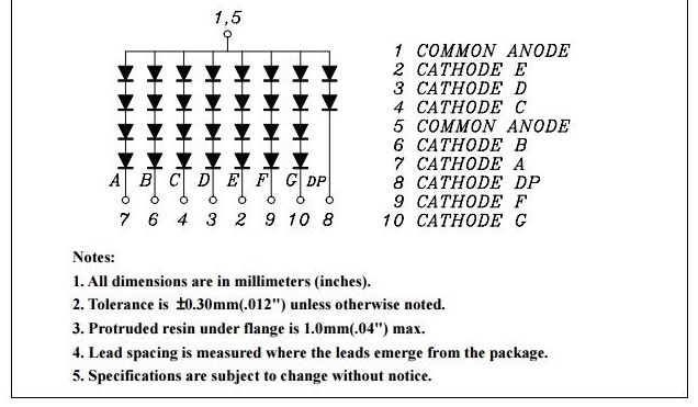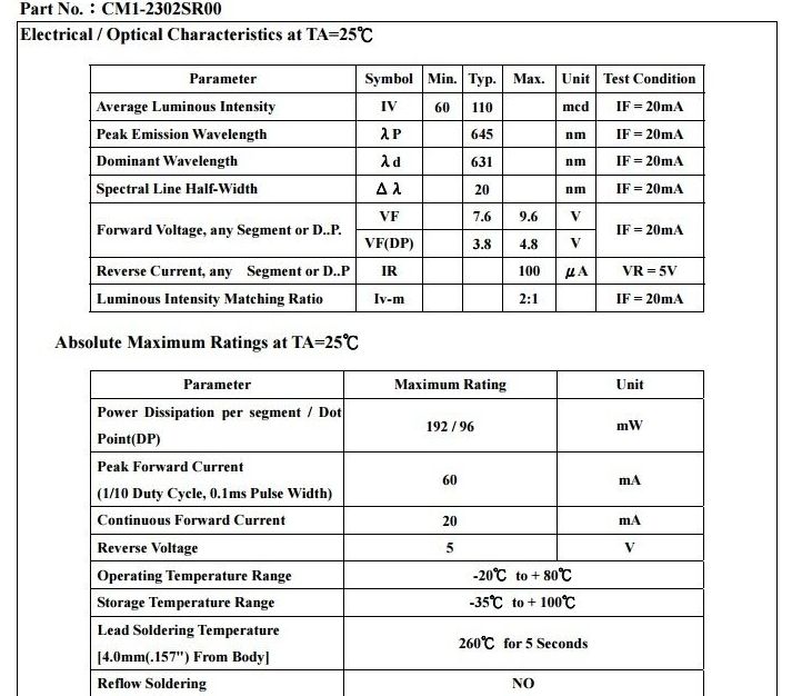 eine LED 7-Segment-Anzeige CM1-2302SR0b , gemeinsame Anode , rot leuchtend