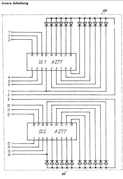 Stereo-LED-Anzeige grün 2 X 12 mit 2 IC A 277 im Punktbetrieb