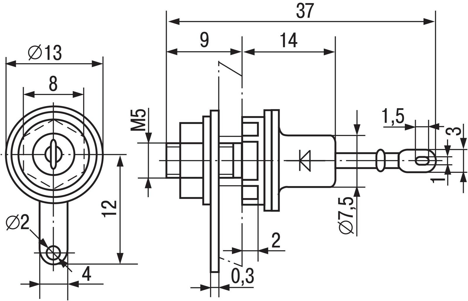 eine Silizium Leistungs-Z-Diode D 816 V ( = 1 N 4030 )