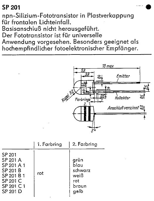 ein Fototransistor SP 201 A