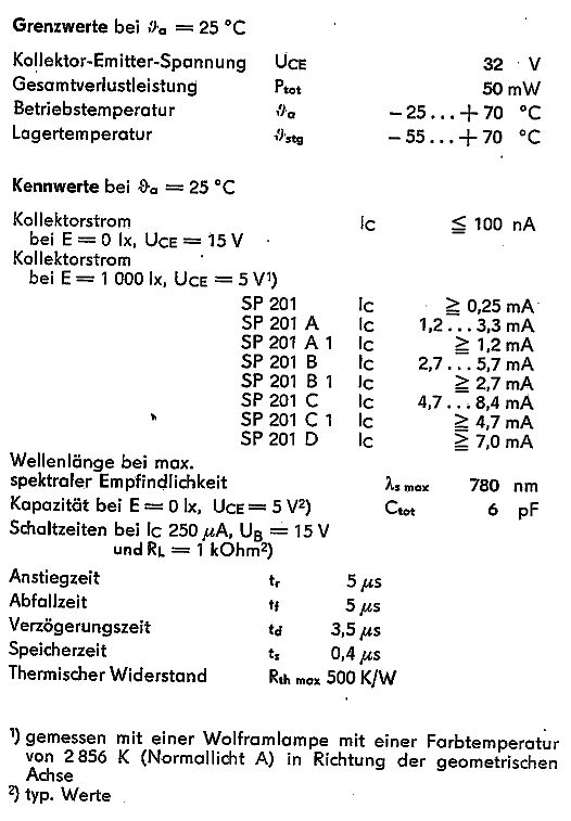 SP 201 A ( Fototransistor , 32 V , 50 mW , 1,2...3,3 mA )