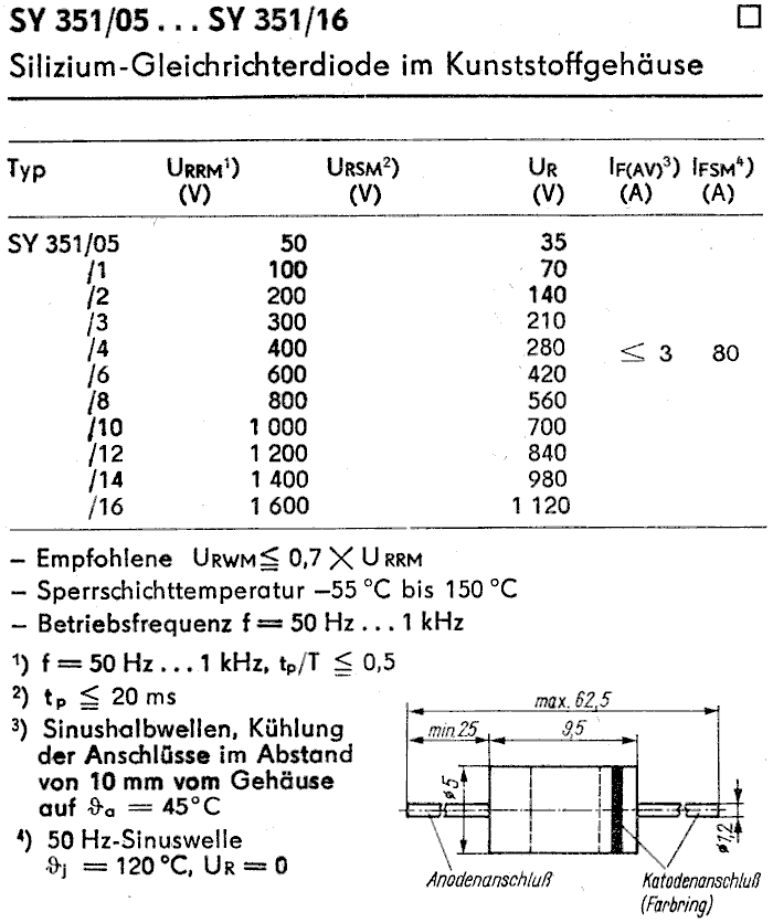 SY 351 / 2 ( Gleichrichter - Diode , 3 A , 200 V )