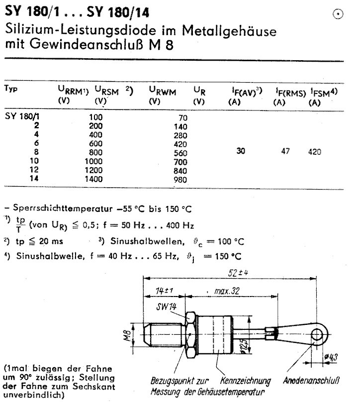 SY 180-4 ( Leistungs-Diode 30 A , 400 V, M8 )
