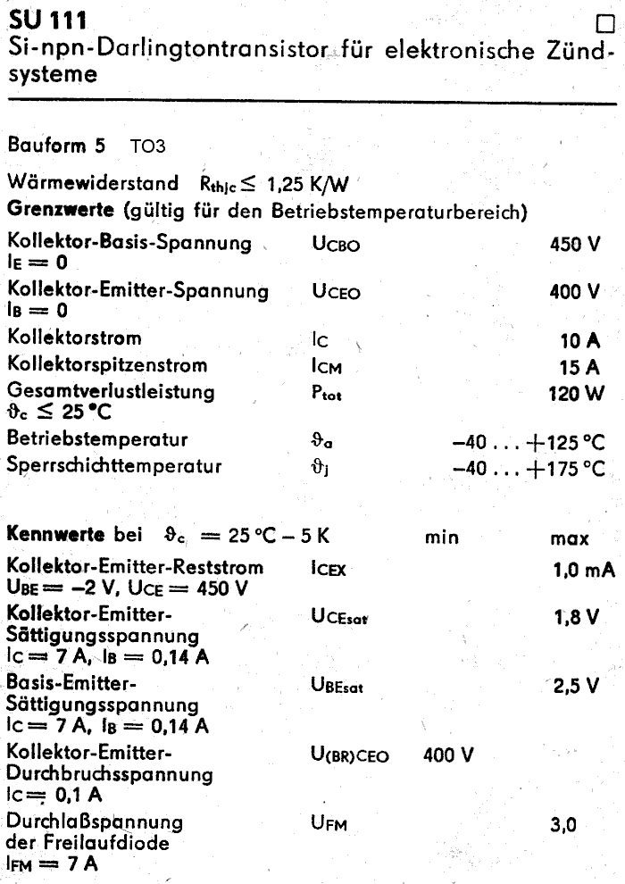 ( Si-npn-Leistungstransistor = BU 921 , Uce 400 V , 10 A , 120 W , TO-03)