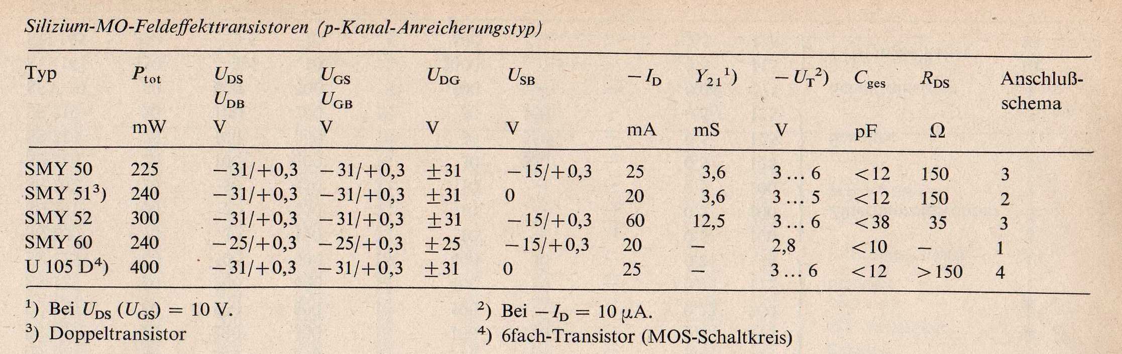 ein MOSFET - Transistor SMY 50 ( = MEM 511 ) Die Kurzdaten: