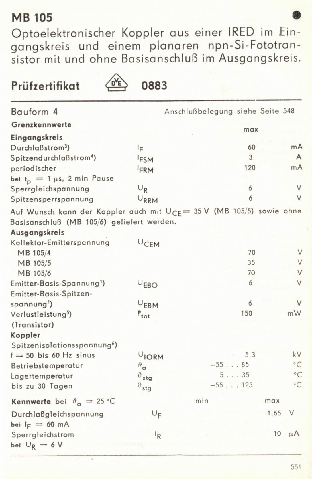 Optokoppler MB 105 / 6 B ( = SFH601 )