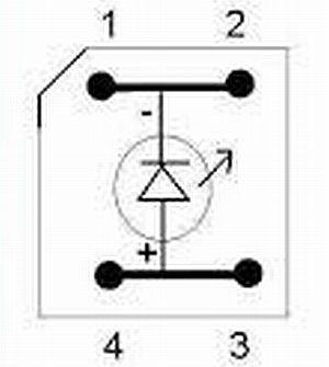eine LED Piranha blau leuchtend, Gehäuse klar, 4 Pin