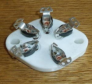 eine Röhrenfassung 5 polig Keramik Typ UX-5 ( für 807 , QE06/50 , VT27 , CV604 u.a. )