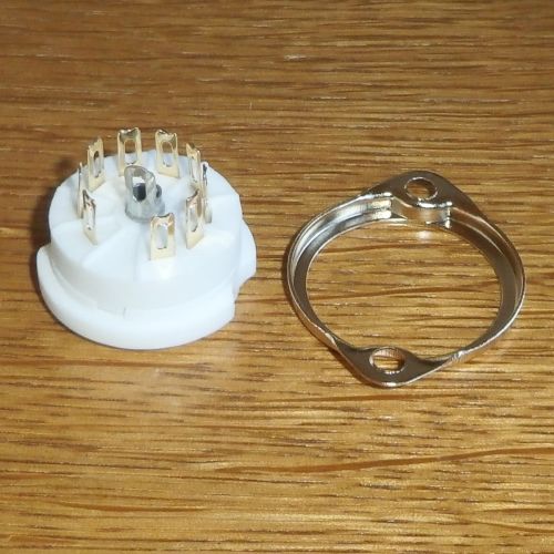 eine Röhrenfassung 9 polig / Noval aus Keramik B9A ( vergoldet ! )