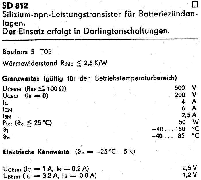( Si-npn-Leistungstransistor , Uce 200 V , Ic 6 A , 50 W , TO-03)