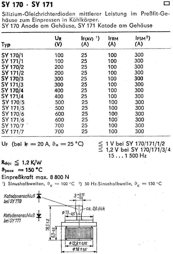 SY 170-4D ( Silizium Einpreß-Diode 25 A , 400 V )