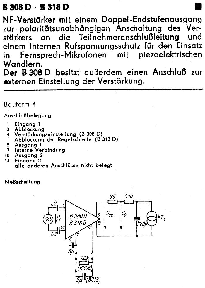 B 308 D ( = TBA 830 = NF-Verstärker für Telefonhörer )