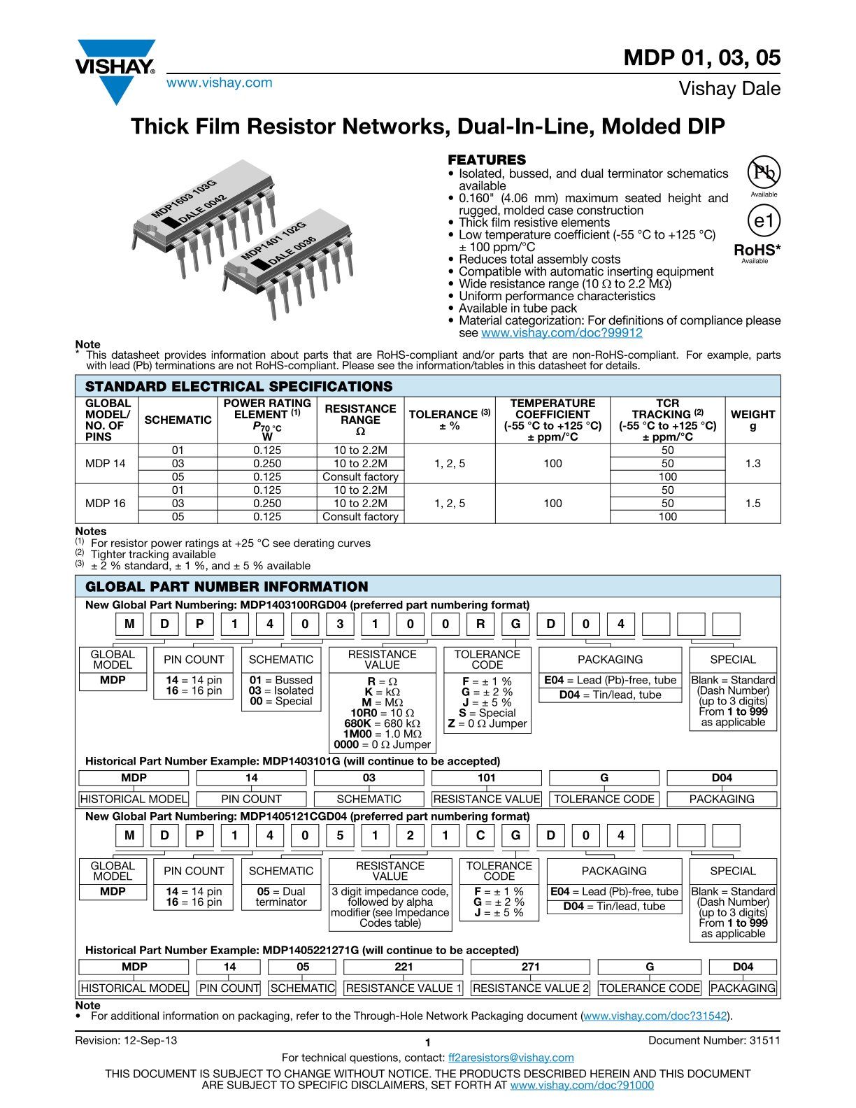 Widerstands-Netzwerk MDP 1601-392 G